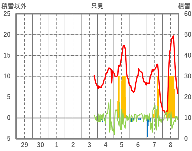| 日 | 時 | 気温 | 降水 | 風向/風速 | 日照 | 積雪 | 降雪 |