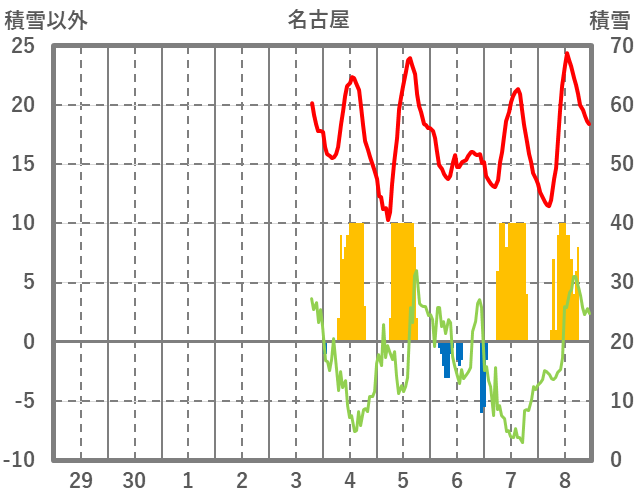 | 日 | 時 | 気温 | 降水 | 風向/風速 | 日照 | 積雪 | 降雪 |
