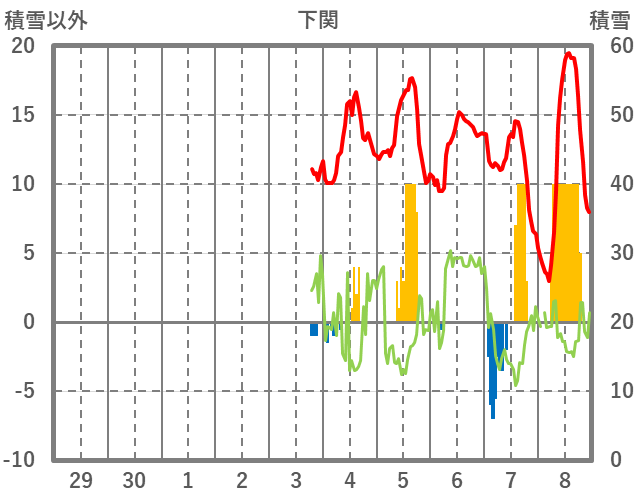 | 日 | 時 | 気温 | 降水 | 風向/風速 | 日照 | 積雪 | 降雪 |