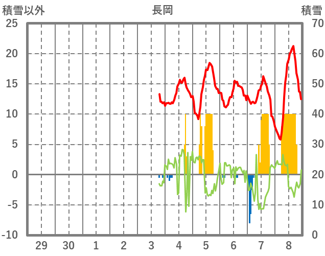 | 日 | 時 | 気温 | 降水 | 風向/風速 | 日照 | 積雪 | 降雪 |
