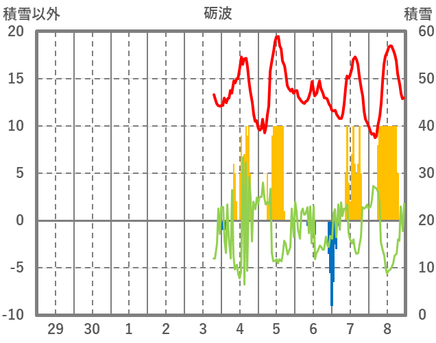 | 日 | 時 | 気温 | 降水 | 風向/風速 | 日照 | 積雪 | 降雪 |