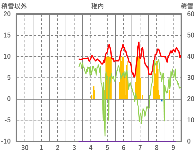 | 日 | 時 | 気温 | 降水 | 風向/風速 | 日照 | 積雪 | 降雪 |