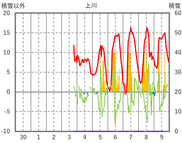 | 日 | 時 | 気温 | 降水 | 風向/風速 | 日照 | 積雪 | 降雪 |