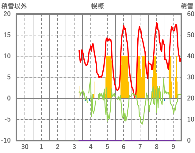 | 日 | 時 | 気温 | 降水 | 風向/風速 | 日照 | 積雪 | 降雪 |
