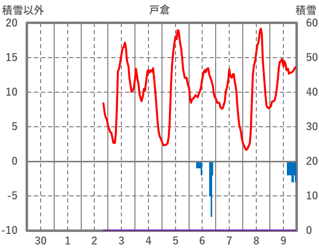 | 日 | 時 | 気温 | 降水 | 風向/風速 | 日照 | 積雪 | 降雪 |