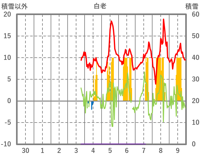 | 日 | 時 | 気温 | 降水 | 風向/風速 | 日照 | 積雪 | 降雪 |