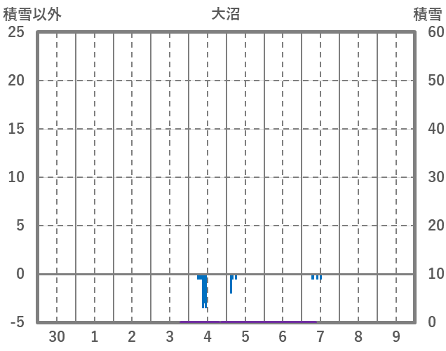 | 日 | 時 | 気温 | 降水 | 風向/風速 | 日照 | 積雪 | 降雪 |