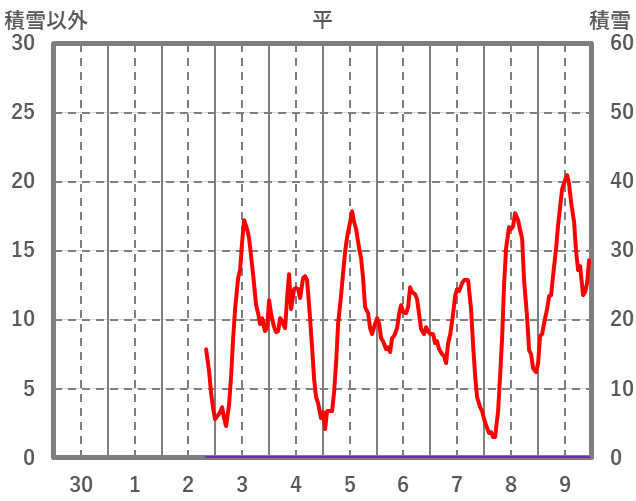 | 日 | 時 | 気温 | 降水 | 風向/風速 | 日照 | 積雪 | 降雪 |