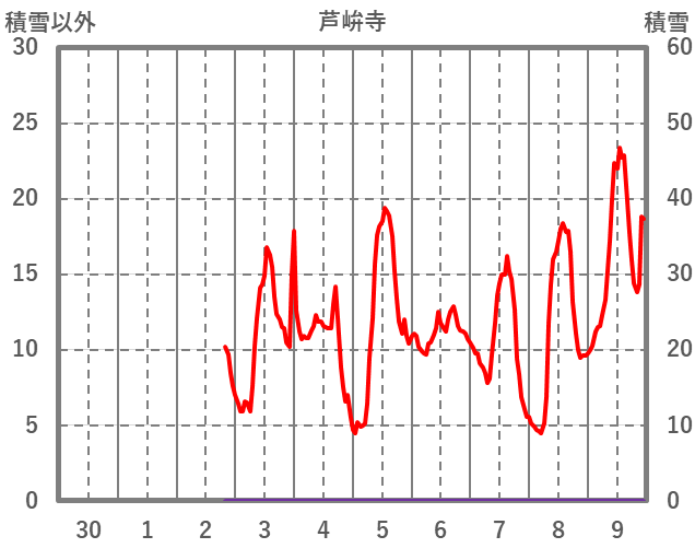 | 日 | 時 | 気温 | 降水 | 風向/風速 | 日照 | 積雪 | 降雪 |