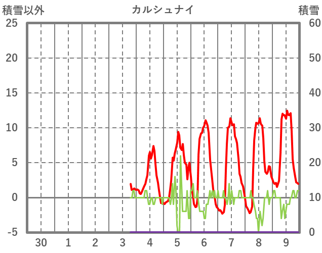 | 日 | 時 | 気温 | 降水 | 風向/風速 | 日照 | 積雪 | 降雪 |