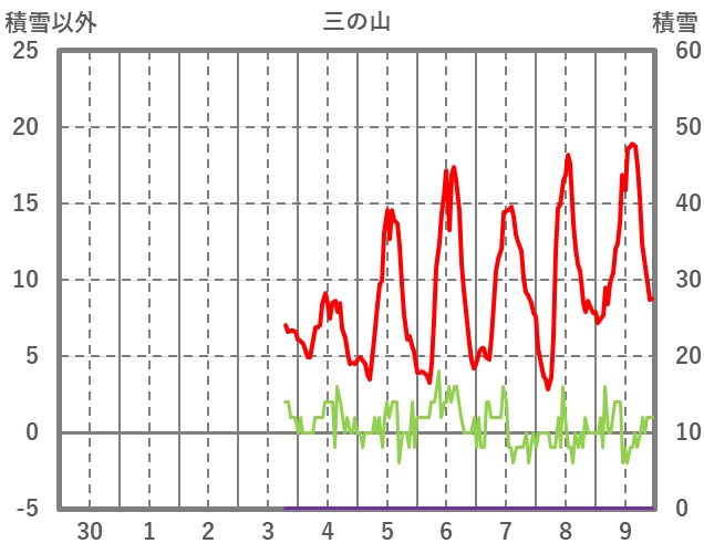 | 日 | 時 | 気温 | 降水 | 風向/風速 | 日照 | 積雪 | 降雪 |