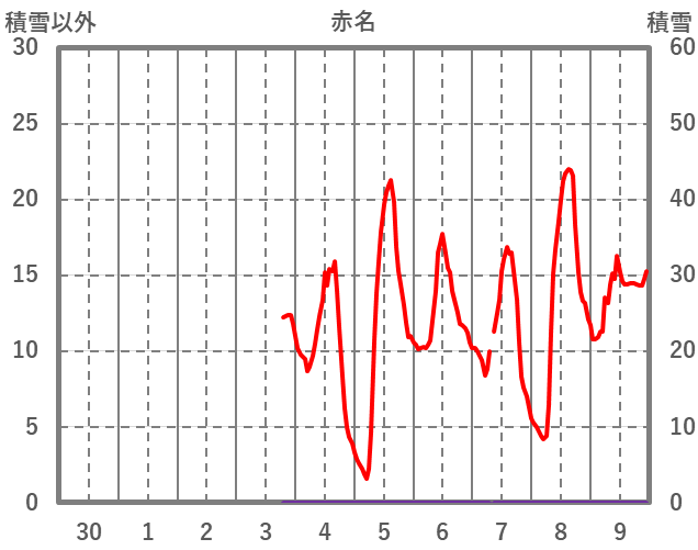 | 日 | 時 | 気温 | 降水 | 風向/風速 | 日照 | 積雪 | 降雪 |