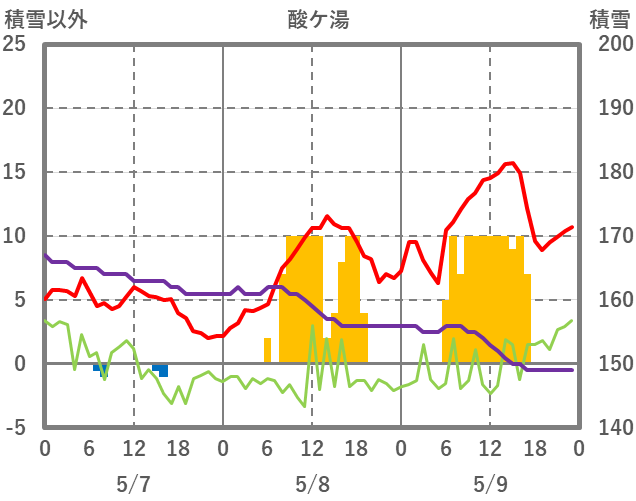 | 日 | 時 | 気温 | 降水 | 風向/風速 | 日照 | 積雪 | 降雪 |