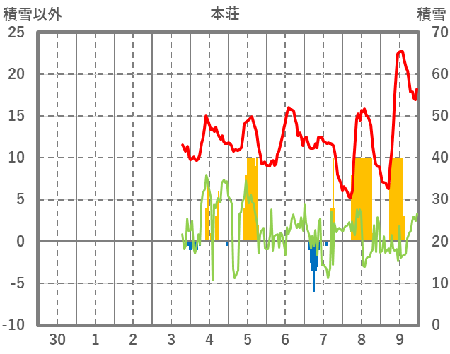 | 日 | 時 | 気温 | 降水 | 風向/風速 | 日照 | 積雪 | 降雪 |