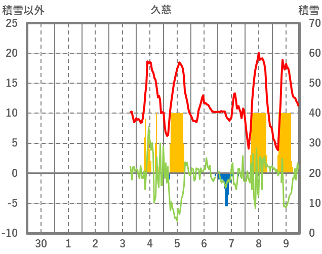 | 日 | 時 | 気温 | 降水 | 風向/風速 | 日照 | 積雪 | 降雪 |