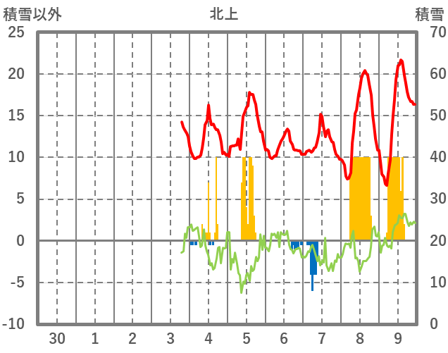 | 日 | 時 | 気温 | 降水 | 風向/風速 | 日照 | 積雪 | 降雪 |