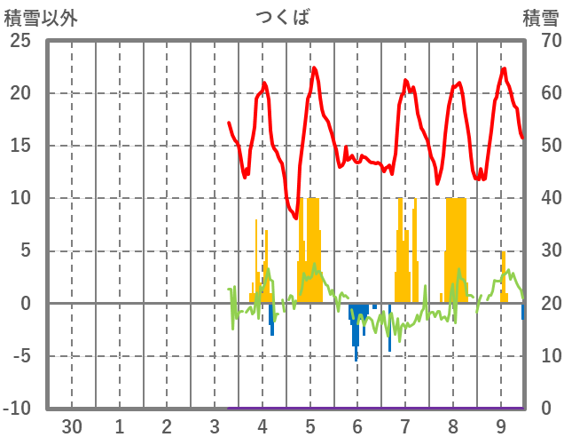 | 日 | 時 | 気温 | 降水 | 風向/風速 | 日照 | 積雪 | 降雪 |