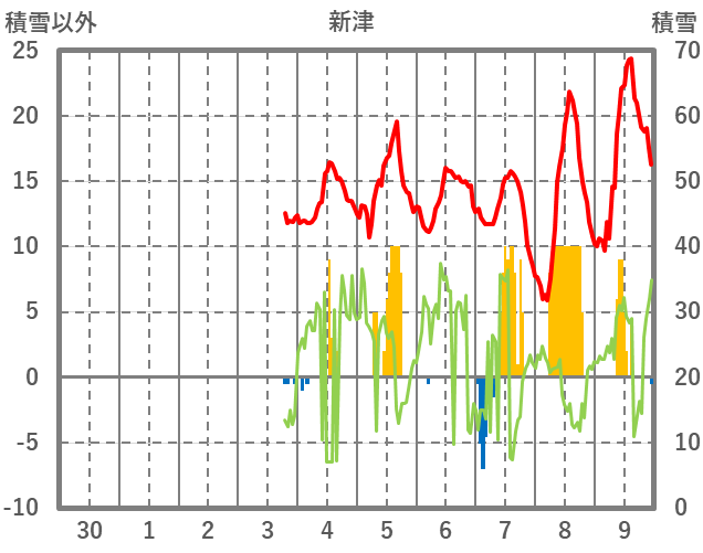 | 日 | 時 | 気温 | 降水 | 風向/風速 | 日照 | 積雪 | 降雪 |