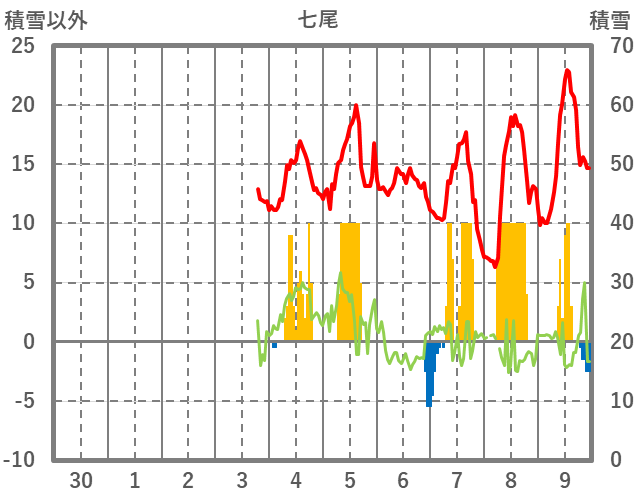| 日 | 時 | 気温 | 降水 | 風向/風速 | 日照 | 積雪 | 降雪 |
