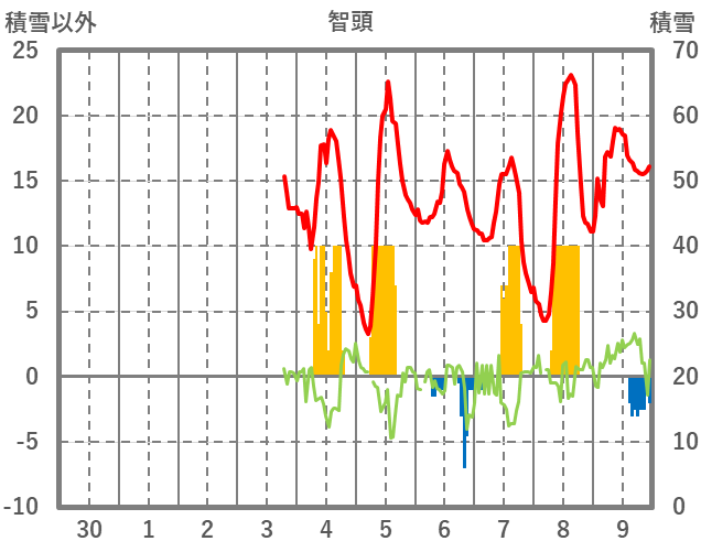 | 日 | 時 | 気温 | 降水 | 風向/風速 | 日照 | 積雪 | 降雪 |