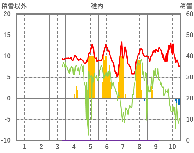 | 日 | 時 | 気温 | 降水 | 風向/風速 | 日照 | 積雪 | 降雪 |
