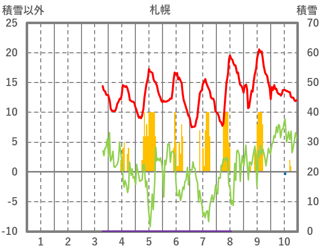 | 日 | 時 | 気温 | 降水 | 風向/風速 | 日照 | 積雪 | 降雪 |