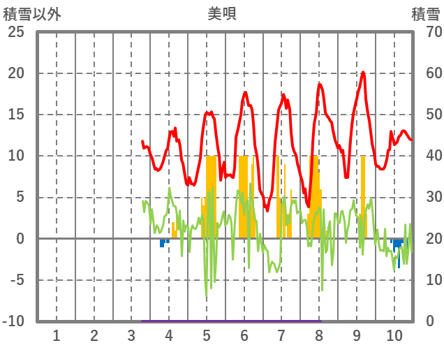 | 日 | 時 | 気温 | 降水 | 風向/風速 | 日照 | 積雪 | 降雪 |