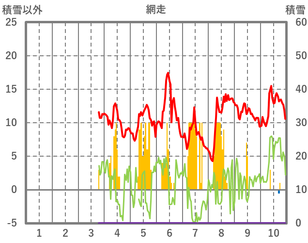 | 日 | 時 | 気温 | 降水 | 風向/風速 | 日照 | 積雪 | 降雪 |