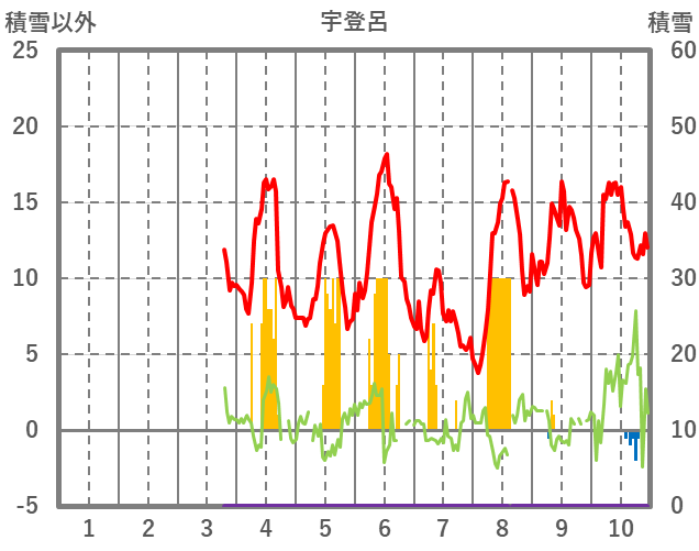 | 日 | 時 | 気温 | 降水 | 風向/風速 | 日照 | 積雪 | 降雪 |