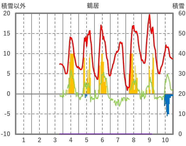 | 日 | 時 | 気温 | 降水 | 風向/風速 | 日照 | 積雪 | 降雪 |