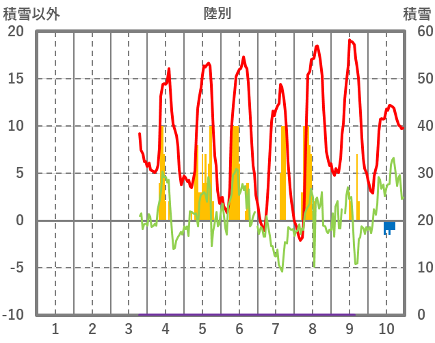 | 日 | 時 | 気温 | 降水 | 風向/風速 | 日照 | 積雪 | 降雪 |