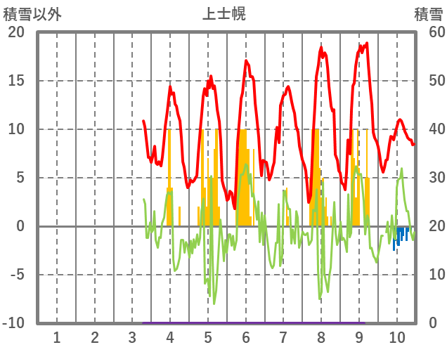 | 日 | 時 | 気温 | 降水 | 風向/風速 | 日照 | 積雪 | 降雪 |