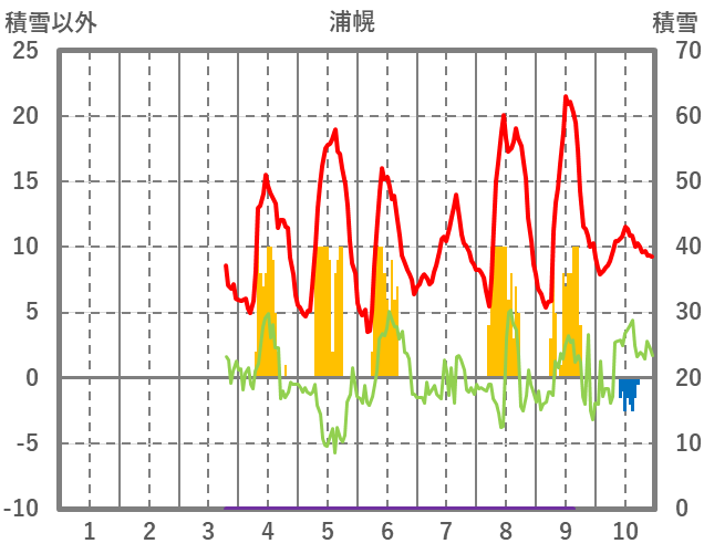 | 日 | 時 | 気温 | 降水 | 風向/風速 | 日照 | 積雪 | 降雪 |