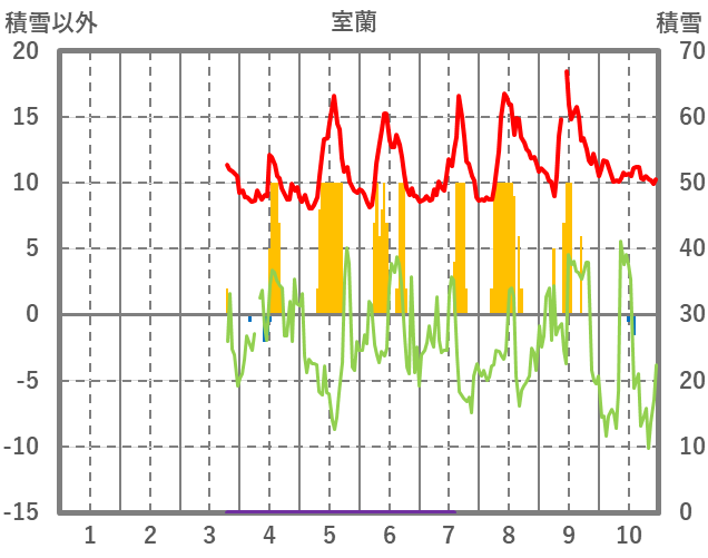 | 日 | 時 | 気温 | 降水 | 風向/風速 | 日照 | 積雪 | 降雪 |