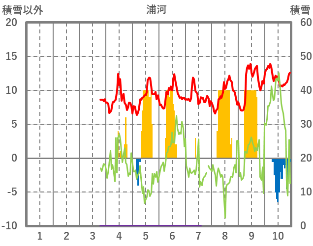 | 日 | 時 | 気温 | 降水 | 風向/風速 | 日照 | 積雪 | 降雪 |