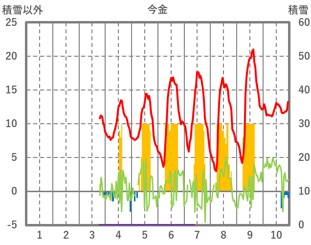 | 日 | 時 | 気温 | 降水 | 風向/風速 | 日照 | 積雪 | 降雪 |