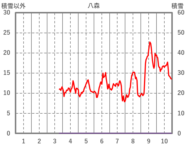 | 日 | 時 | 気温 | 降水 | 風向/風速 | 日照 | 積雪 | 降雪 |