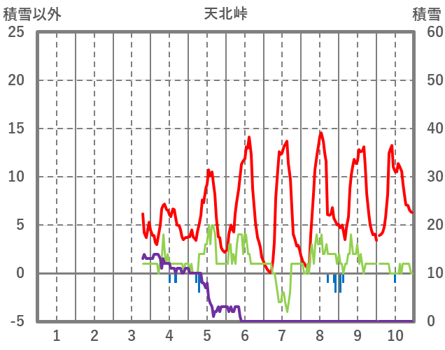 | 日 | 時 | 気温 | 降水 | 風向/風速 | 日照 | 積雪 | 降雪 |