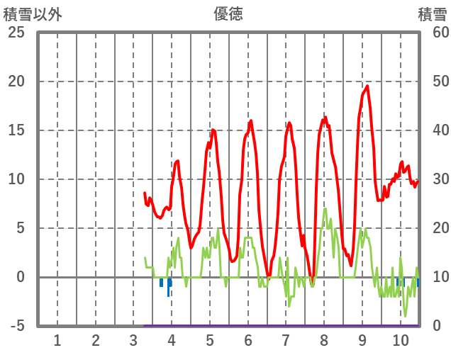 | 日 | 時 | 気温 | 降水 | 風向/風速 | 日照 | 積雪 | 降雪 |