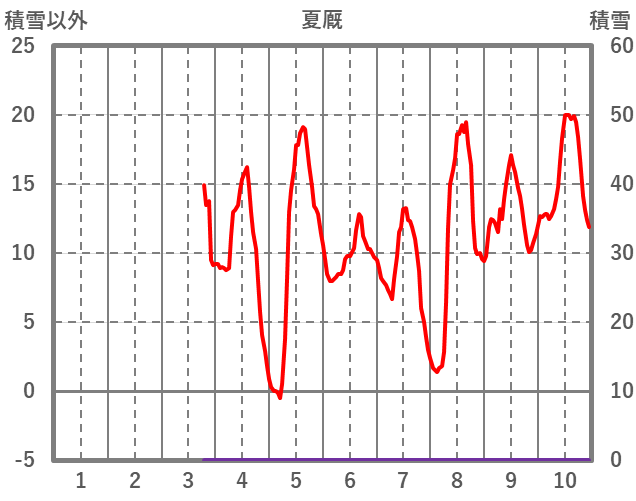 | 日 | 時 | 気温 | 降水 | 風向/風速 | 日照 | 積雪 | 降雪 |