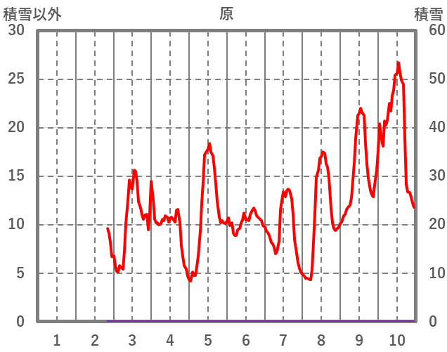 | 日 | 時 | 気温 | 降水 | 風向/風速 | 日照 | 積雪 | 降雪 |