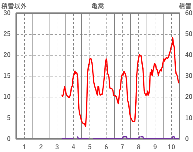 | 日 | 時 | 気温 | 降水 | 風向/風速 | 日照 | 積雪 | 降雪 |