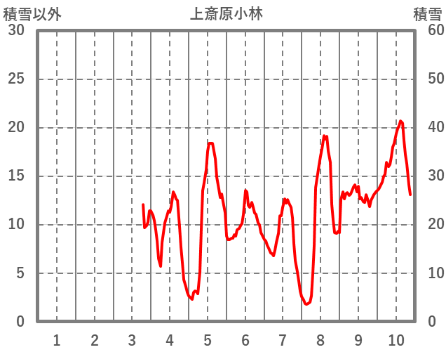 | 日 | 時 | 気温 | 降水 | 風向/風速 | 日照 | 積雪 | 降雪 |
