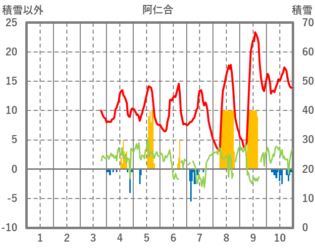 | 日 | 時 | 気温 | 降水 | 風向/風速 | 日照 | 積雪 | 降雪 |