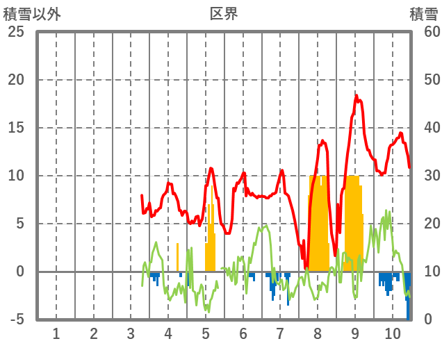 | 日 | 時 | 気温 | 降水 | 風向/風速 | 日照 | 積雪 | 降雪 |