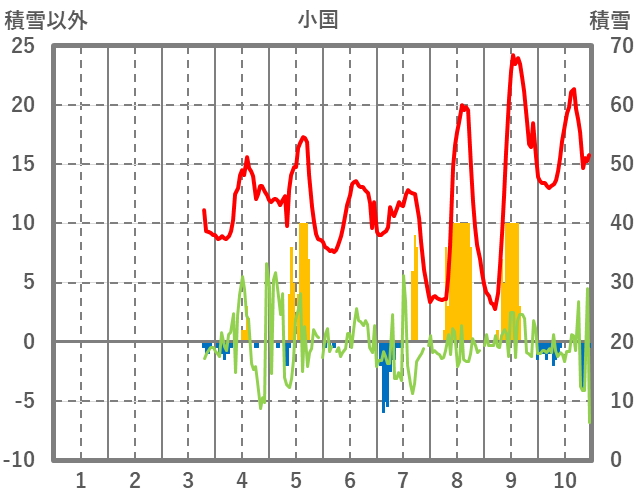 | 日 | 時 | 気温 | 降水 | 風向/風速 | 日照 | 積雪 | 降雪 |