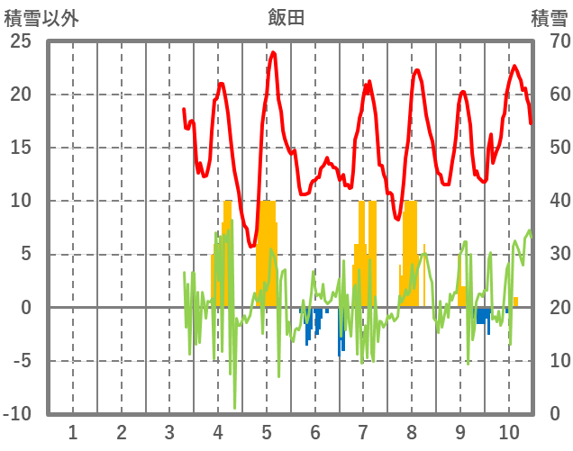 | 日 | 時 | 気温 | 降水 | 風向/風速 | 日照 | 積雪 | 降雪 |