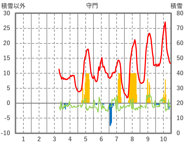 | 日 | 時 | 気温 | 降水 | 風向/風速 | 日照 | 積雪 | 降雪 |
