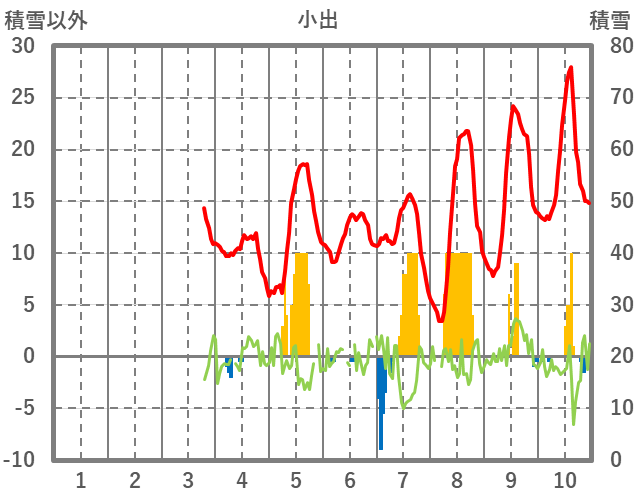 | 日 | 時 | 気温 | 降水 | 風向/風速 | 日照 | 積雪 | 降雪 |