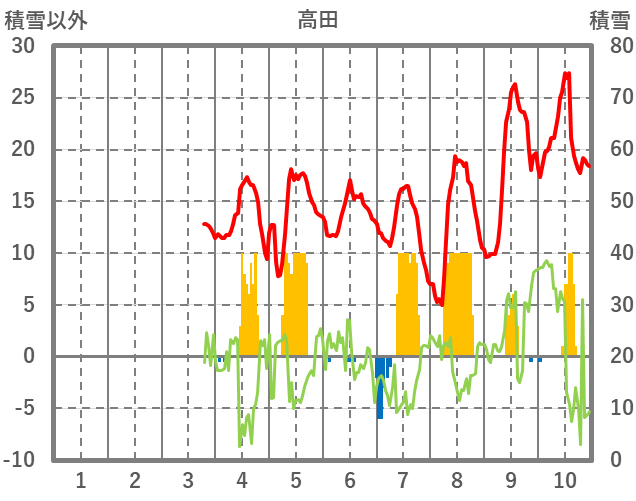 | 日 | 時 | 気温 | 降水 | 風向/風速 | 日照 | 積雪 | 降雪 |